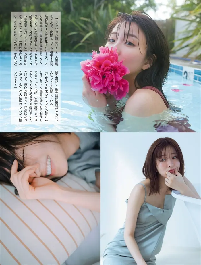 岡崎紗絵のスレンダー美乳なビキニ水着姿でシコれるオカズ本です。